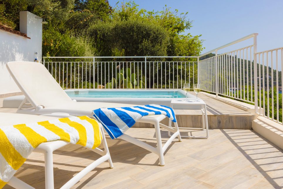 Get away from it all and savor some quality time with your sweetheart in our attic hide-away with sweeping views over the turquoise waters of the Mediterranean.